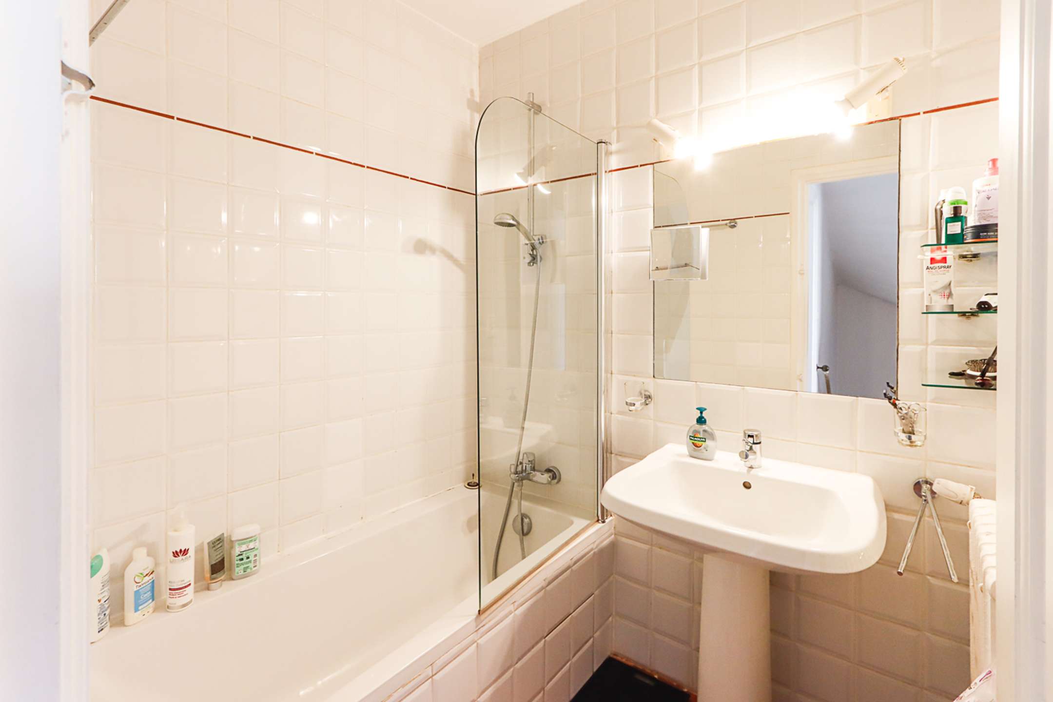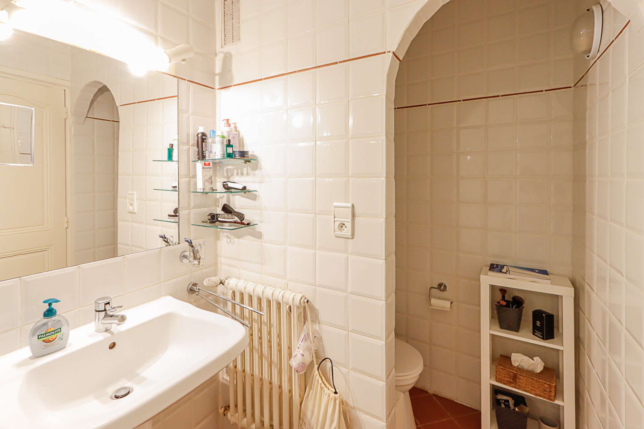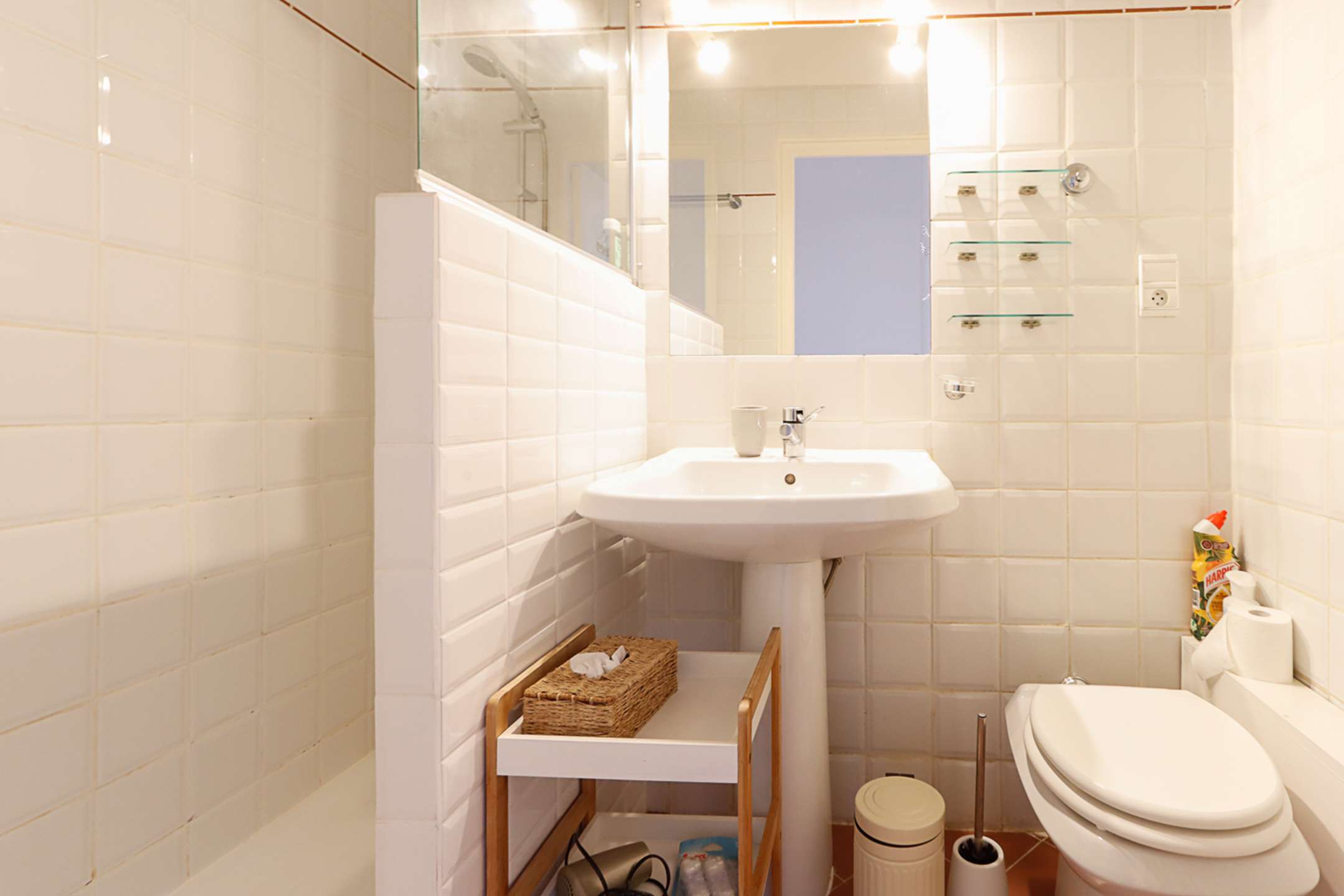- on the ground floor, a large living-room, an open-plan kitchen (dishwasher, washing-machine, fridge with a separate freezer, oven, microwave, Nespresso coffee-machine, toaster, kettle) and guest toilets.