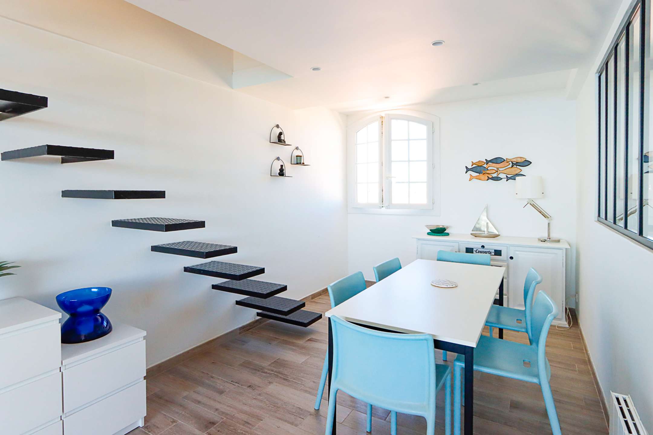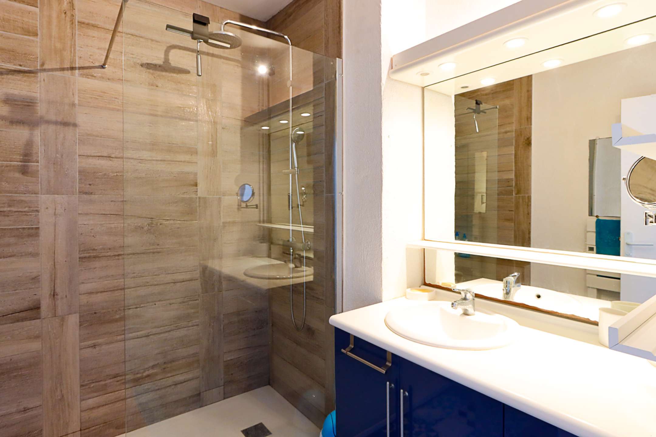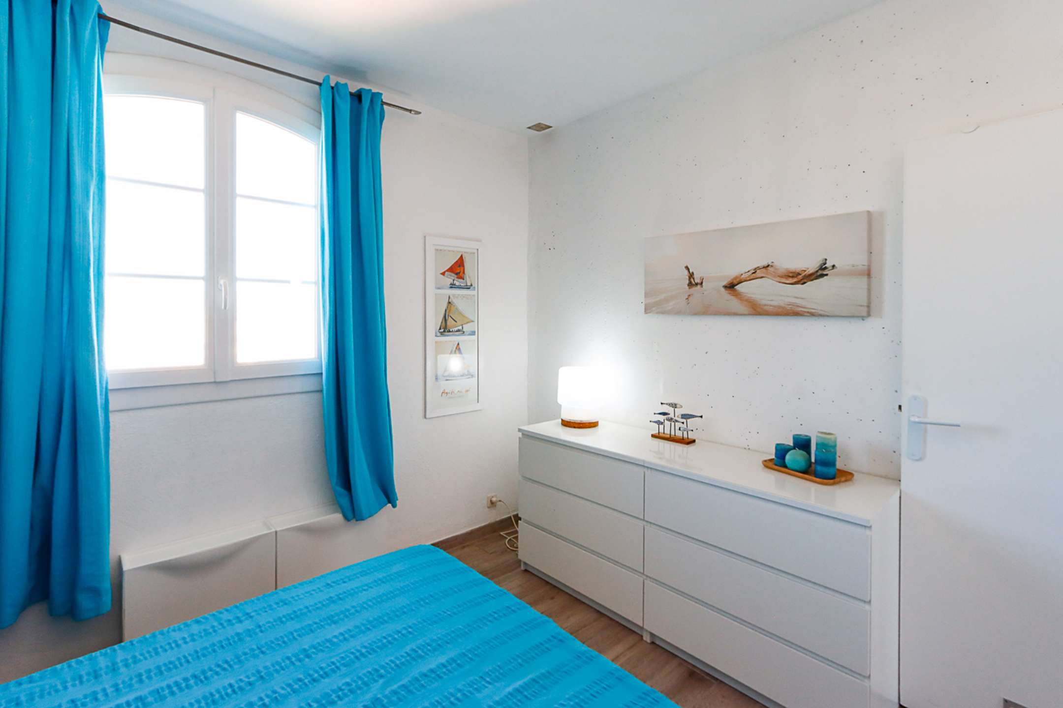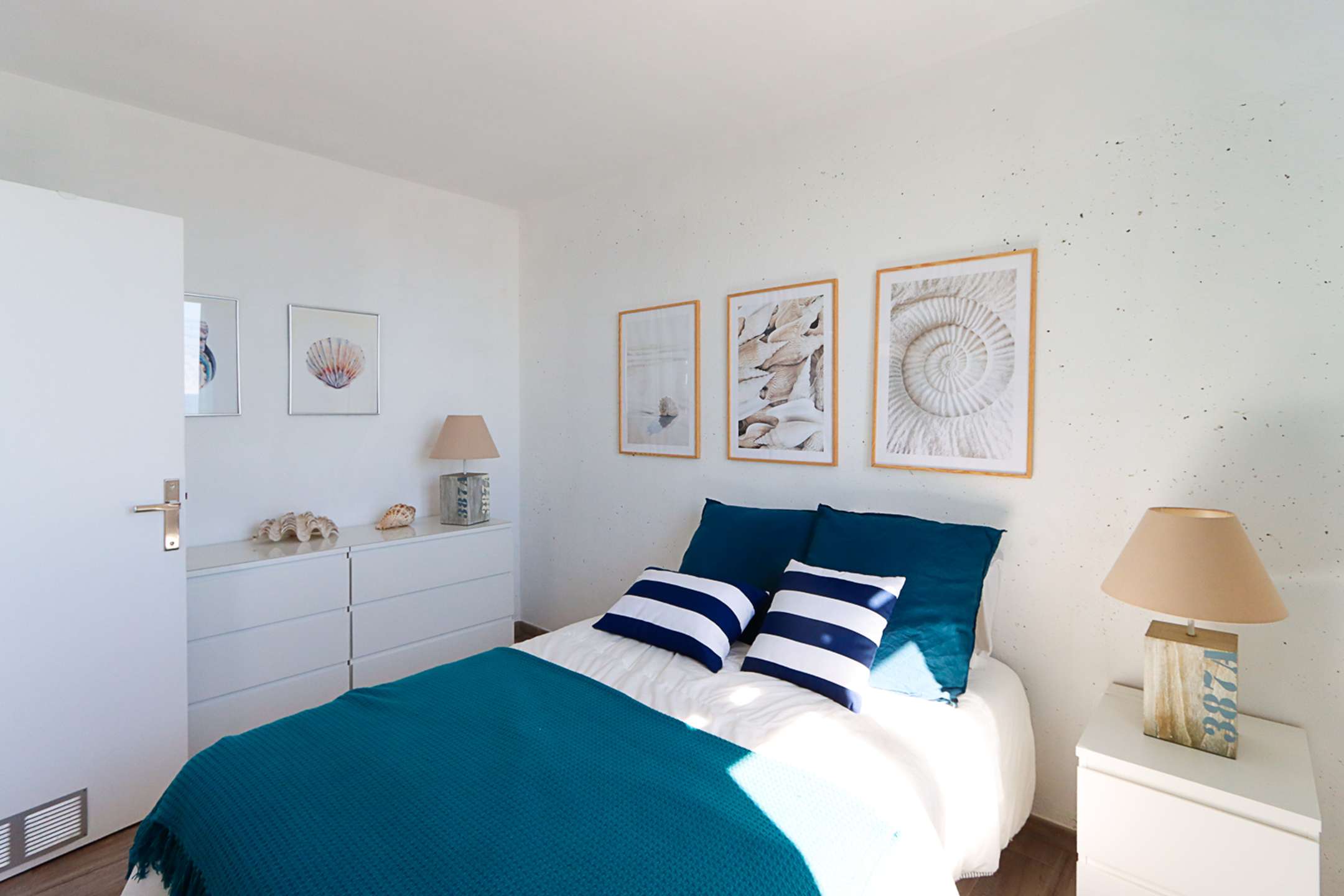 The apartment is composed of a bright dual aspect living-room, a separate kitchen (washing-machine, dishwasher, oven, microwave, Nespresso coffee-machine, fridge with a freezer), a shower-room, separate toilets, 2 bedrooms with a double bed (160cm and 140cm) and sea view and 1 bedroom with a double bed (140cm) and a view on Port Grimaud.
