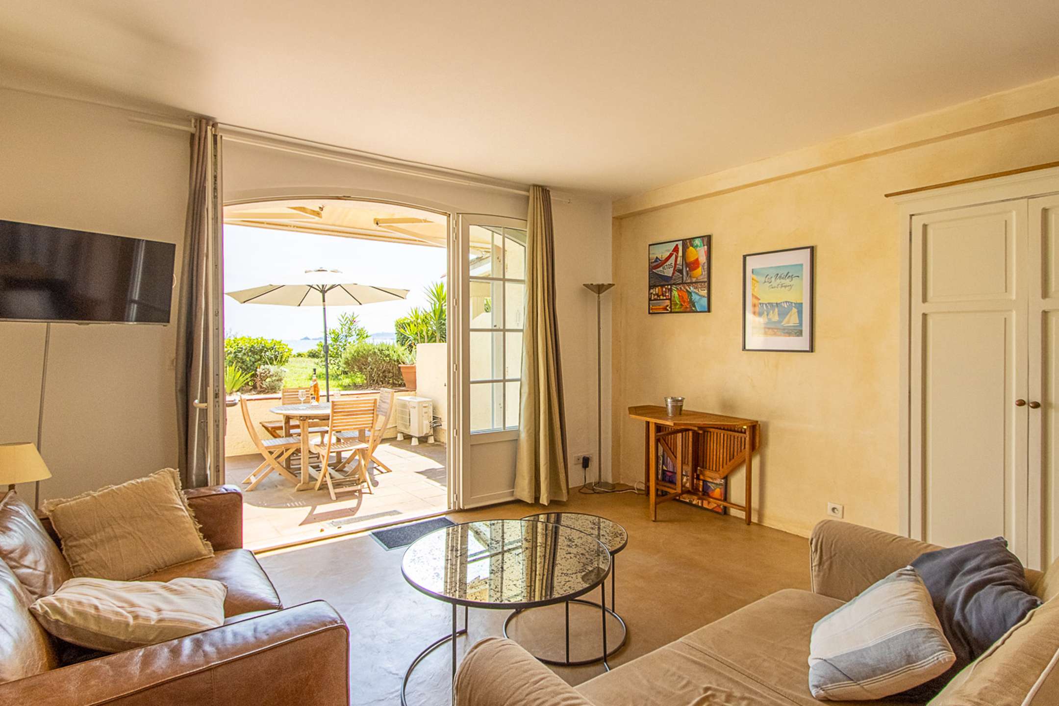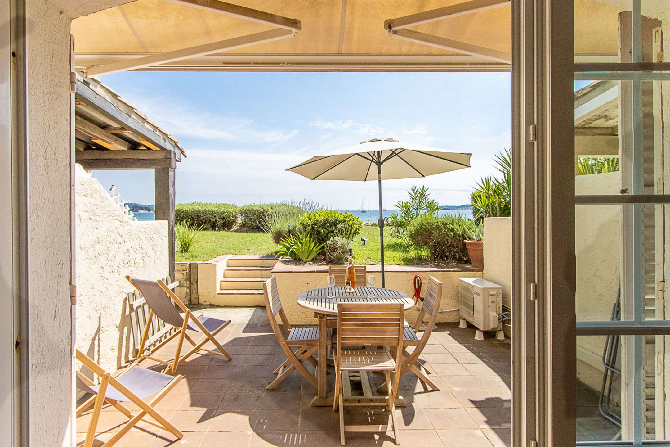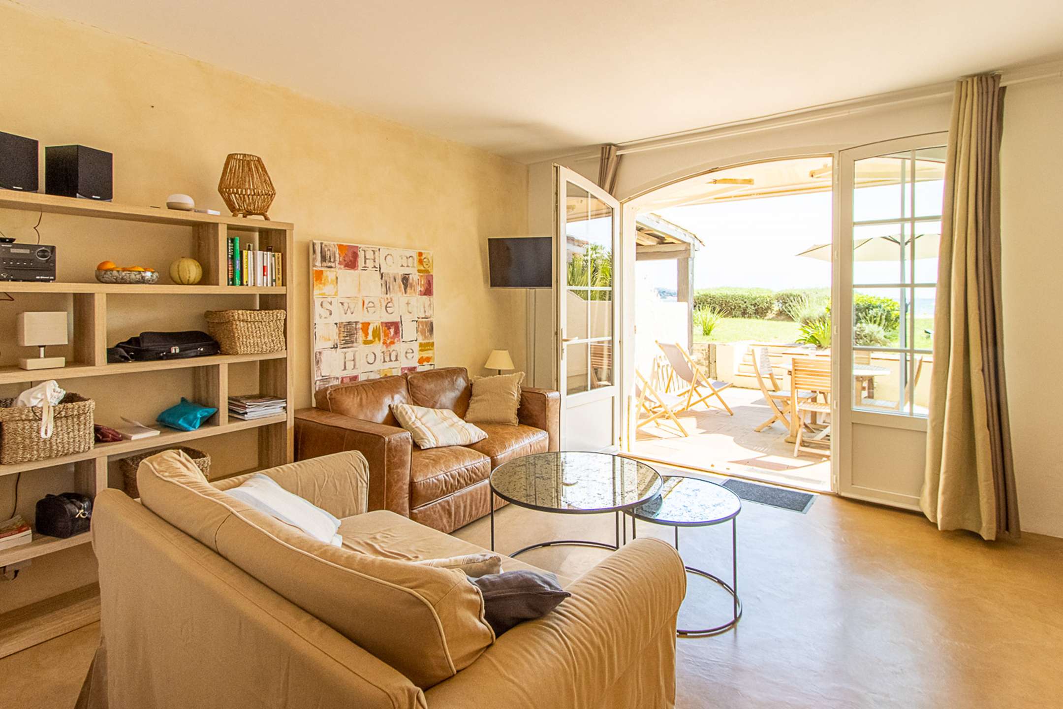 The living-room leads to a terrace that has a direct access to the beach.
