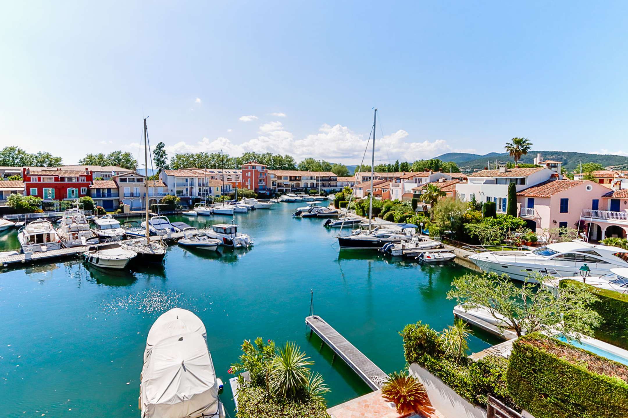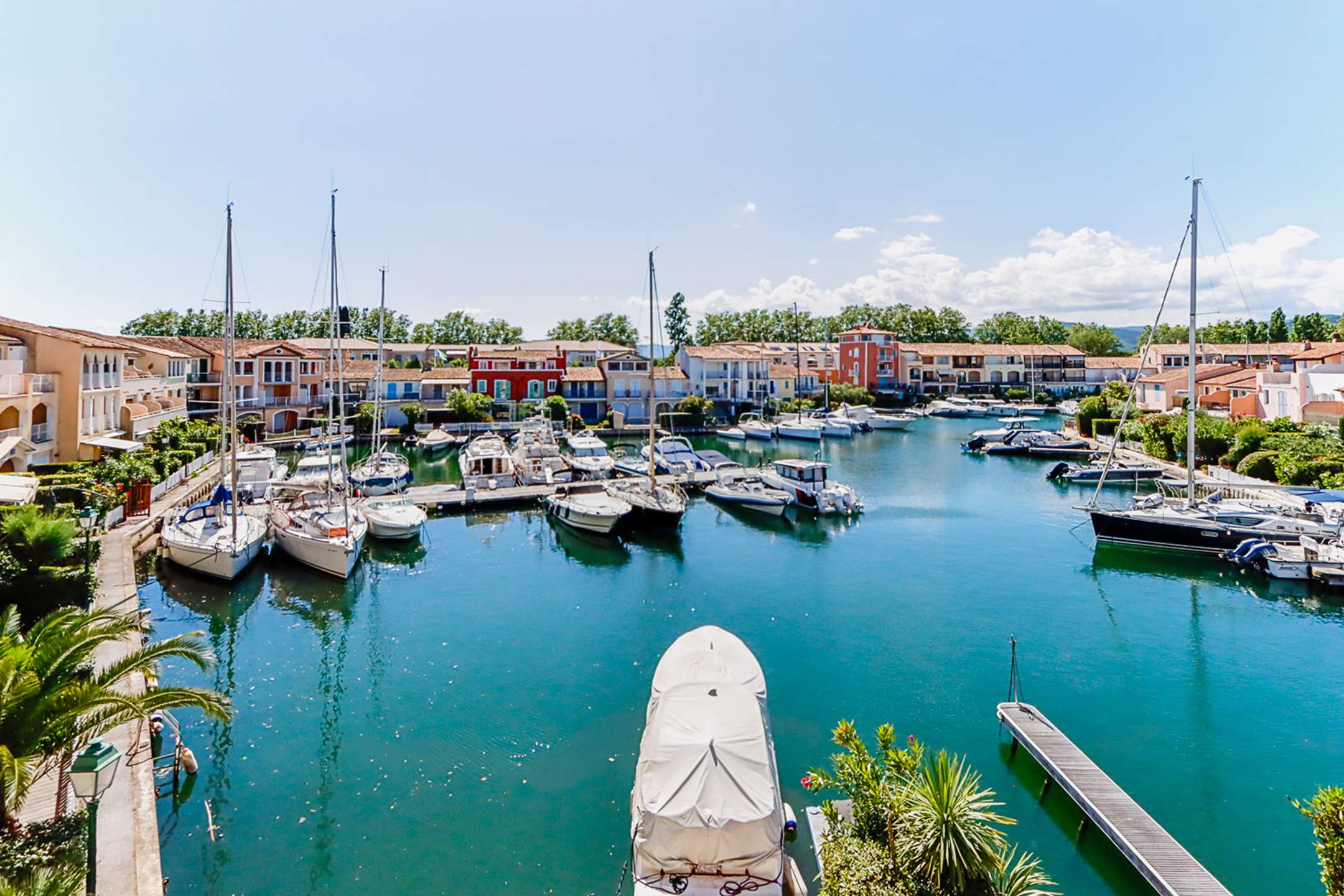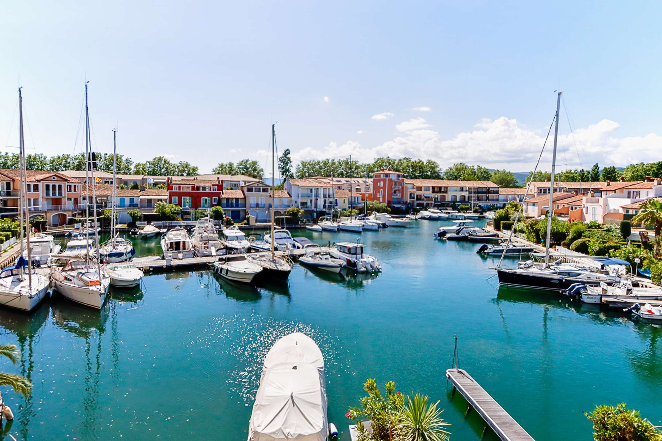 Emplacement central à Port Grimaud Sud, près des commerces.