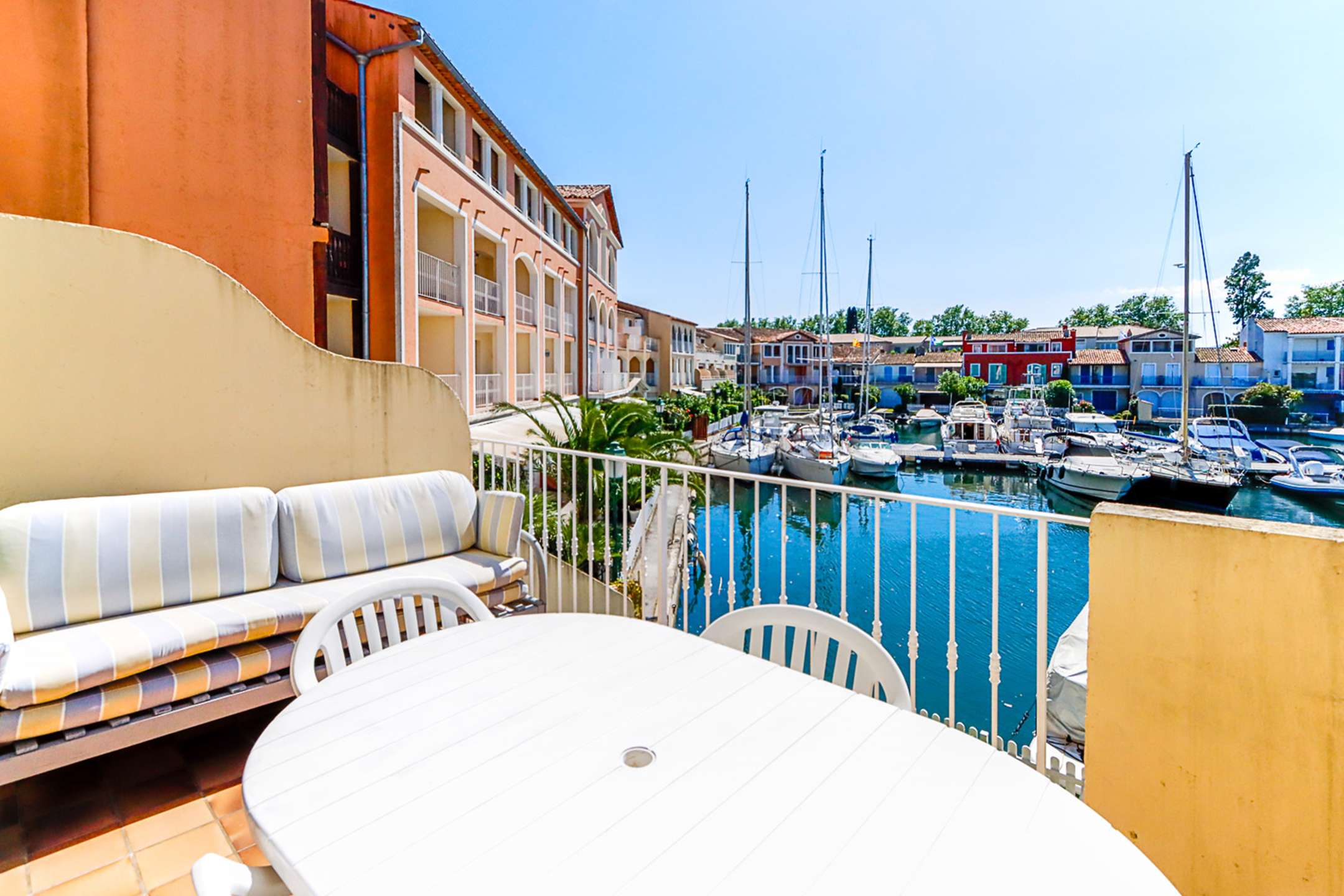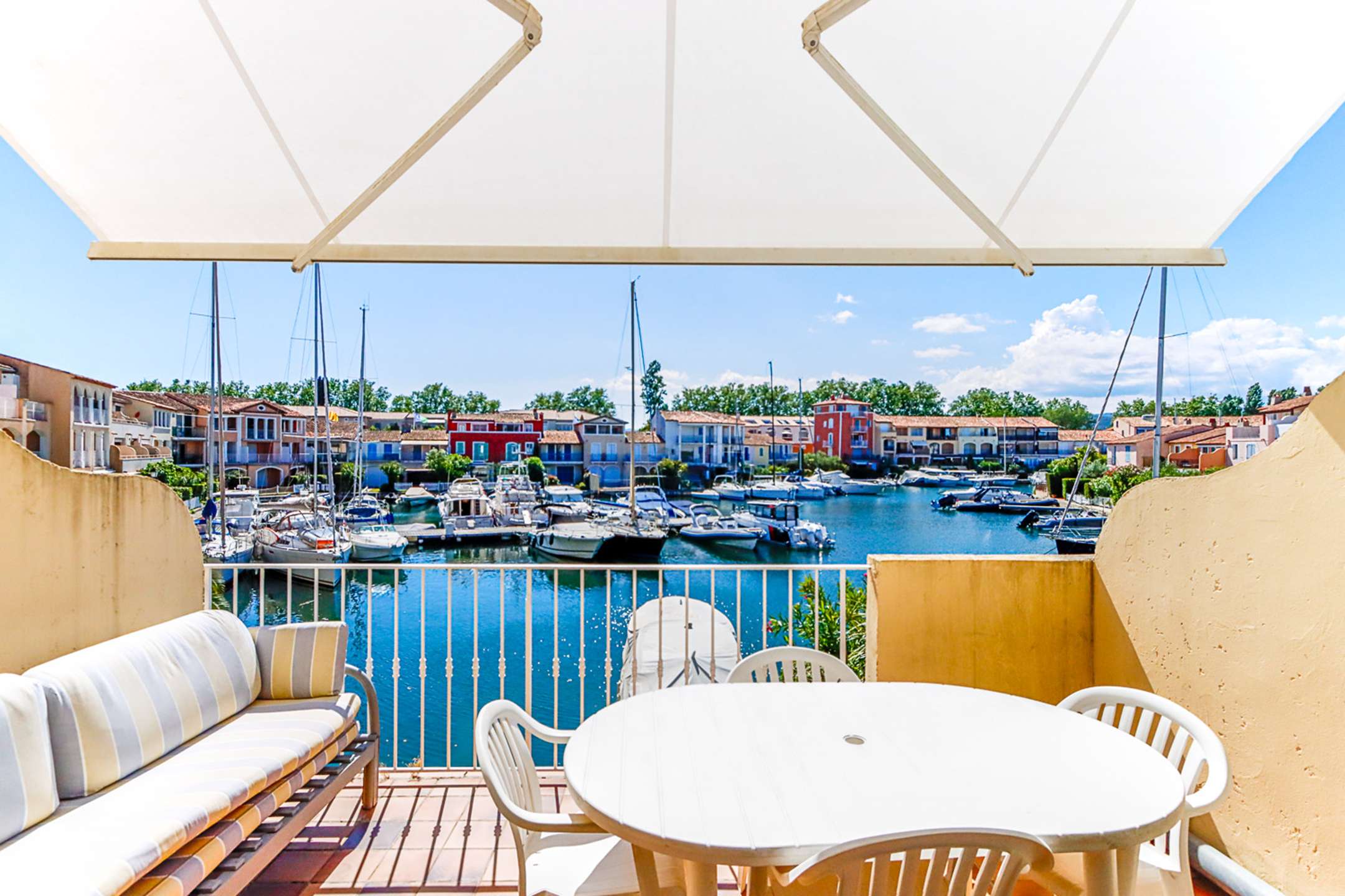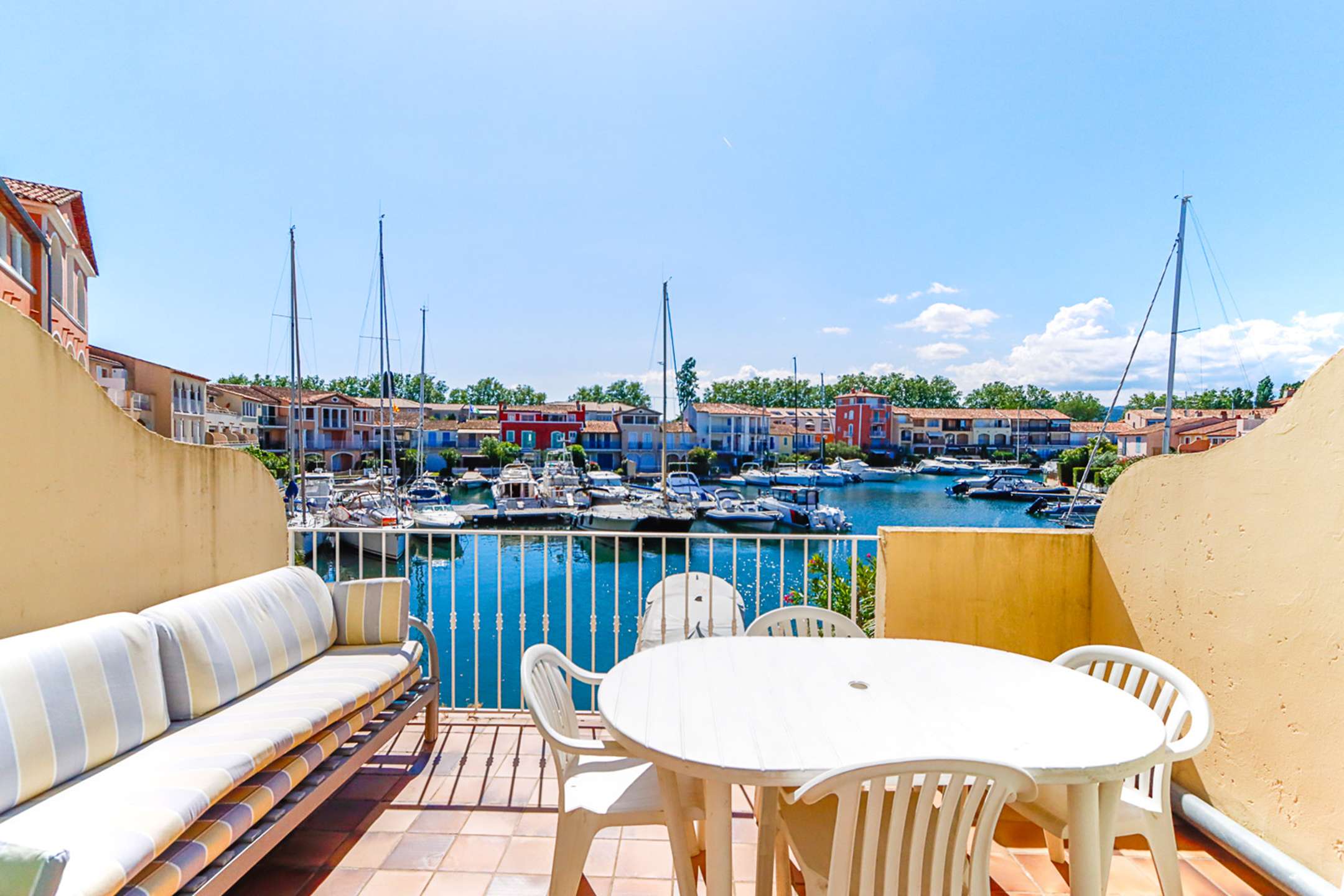 Emplacement central à Port Grimaud Sud, près des commerces.