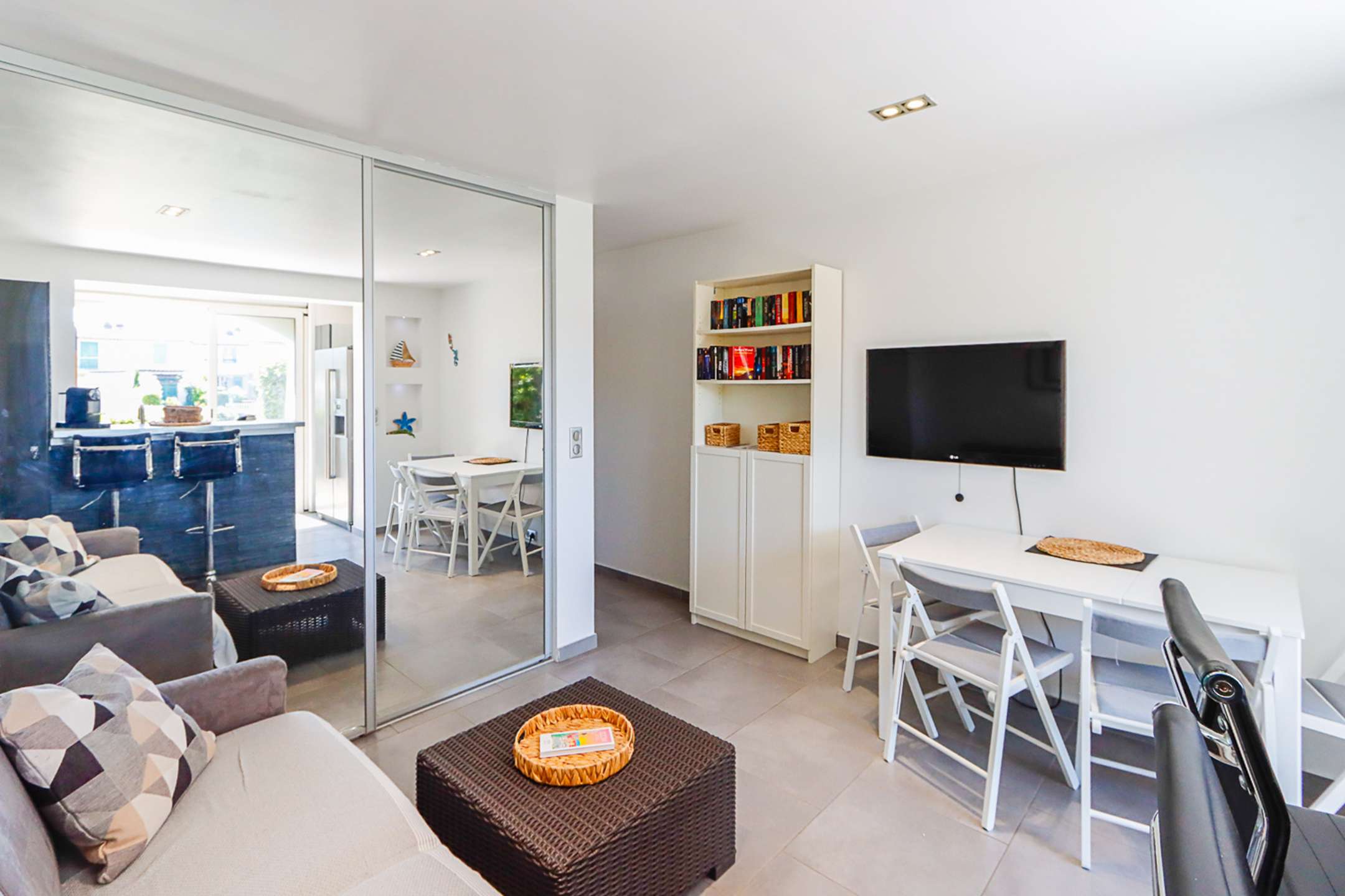 Il se compose d'un salon avec un canapé-lit (140cm de large), une cuisine ouverte équipée (lave-vaisselle, lave-linge, micro-ondes, réfrigérateur avec congélateur, plaques de cuisson, Nespresso, grille-pain, bouilloire), une chambre avec un lit double (140cm de large) et une salle de douche avec douche à l'italienne.